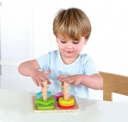 Cu ajutorul acestei jucării simple, copiii își pot exersa îndemânarea și răbdarea, învățând în același timp să recunoască forme și culori și bazele numărării. Jucăria este fabricată din lemn FSC® de calitate și este ideală pentru dezvoltarea abilităților celor mici.