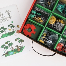 Imersiunează-te în lumea creativității cu setul de construcție JungleBit de la OffBits. Acest set permite crearea a patru modele de bază: BeeBit, MonkeyBit și DragonflyBit, dar asta nu este tot! Cu ajutorul acestui set poți construi alte creații unice și să experimentezi cu materiale diverse din gospodărie. Setul de construcție susține dezvoltarea abilităților în domeniul științei, tehnologiei, ingineriei, artei și matematicii, în timp ce ajută la îmbunătățirea abilităților motorii fine și a gândirii logice la copii.