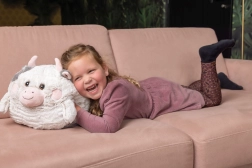 Perna adorabilă cu motiv de văcuță îmbină trei funcții într-una: pernă moale din pluș, mânecă pentru încălzirea mâinilor și plușul preferat. Datorită celor două deschideri laterale încălzește mâinile în câteva clipe și servește și ca ascunzătoare secretă pentru mărunțișuri. Este ideală acasă și în călătorii cu mașina, trenul sau avionul.