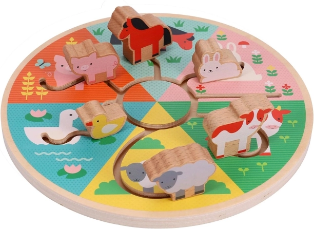 Pe o pajiște verde, un căluț paște liniștit, în timp ce o rățușcă se bălăcește printre nuferi înfloriți. Ajutați animăluțele precum văcuța să-și găsească drumul spre casă în acest labirint uimitor care dezvoltă abilitățile psihomotorii ale copiilor. Această jucărie: