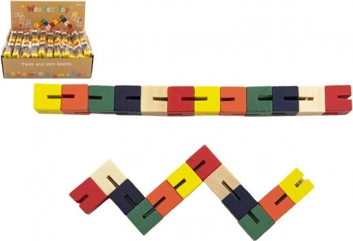 Joc clasic din lemn în formă de șarpe, ideal pentru dezvoltarea motricității fine la copii. Posibilitate de asamblare în forme variate prin rotirea pieselor.