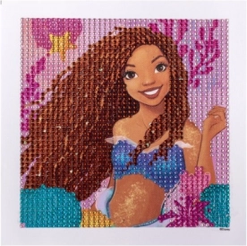 Pictură cu pietricele Mica sirenă – 29×29 cm. Pachetul conține 1 pânză cu motive de sirenă, pietricele diamant + aplicator.