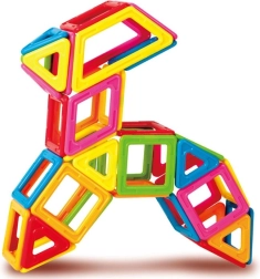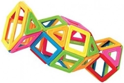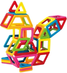 Poligoanele magnetice conectează construcțiile 2D și 3D. Prin joacă, copiii își exersează motricitatea fină, imaginația spațială și bazele geometriei și logicii.