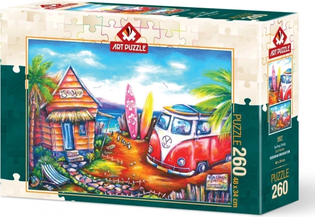 Bucurați-vă de asamblarea unui puzzle cu motivul taberei surferilor de la ART PUZZLE. Setul de 260 de piese creează o imagine cu dimensiuni de aprox. 48 × 34 cm și oferă distracție pentru întreaga familie. Producătorul oferă, de asemenea, serviciul de trimitere a piesei lipsă (dacă motivul este disponibil și este furnizat numărul lotului de producție).