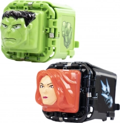 Descoperiți un joc palpitant cu tematică MARVEL Avengers, care îmbină reguli simple, elemente de colecție și acțiune rapidă. Fiecare zar ascunde alegerea piatră, foarfecă sau hârtie sub masca eroului preferat. Setați mutarea, acoperiți-o cu masca, aruncați zarurile unul împotriva celuilalt și dezvăluiți câștigătorul – piatra bate foarfeca, foarfeca bate hârtia, iar hârtia bate piatra.