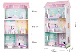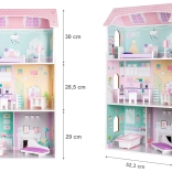 Căsuța are trei niveluri independente cu patru camere, fiecare finisată într-un alt stil și include mobilier care poate fi mutat liber. Camerele deschise și spațioase permit joaca cu păpuși fără probleme și atrag copiii să se joace ore lungi.