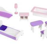 Setul include 8 piese de mobilier precum masă, scaune, pat, dulap și altele, care pot fi mutate liber.