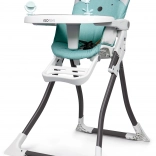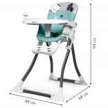 Șezutul corect profilat cu centură în 3 puncte asigură poziția sigură a copilului, iar elementul dintre picioare protejează suplimentar împotriva alunecării. Suportul pentru picioare reglabil (4 trepte) și posibilitatea de îndepărtare și spălare a husei la 30 °C simplifică utilizarea și întreținerea zilnică. Combinația stabilă de metal și plastic, cu piciorușe antiderapante, garantează siguranță la fiecare masă.
