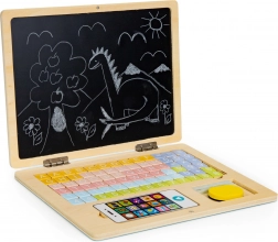 Laptopul din lemn ECO TOYS este instrumentul ideal pentru micii artiști și gânditori curioși. Acest instrument multifuncțional oferă atât o tablă neagră pentru scris cu creta și desenat, cât și o tablă magnetică pentru formarea cuvintelor și numerelor. Este o modalitate excelentă de a dezvolta creativitatea și abilitățile copiilor în învățarea bazelor cititului și matematicii.