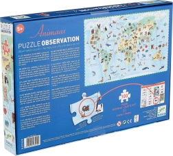 Descoperă lumea cu puzzle-ul pentru copii DJECO Observation, care îmbină bucuria asamblării cu cunoașterea naturii. În imaginea mare, copiii vor găsi animale de pe toate continentele, iar datorită broșurii incluse își vor extinde cunoștințele. Puzzle-ul de 100 de piese are, după asamblare, dimensiunea de aproximativ 63 × 45 cm și susține gândirea logică, răbdarea și motricitatea fină.
