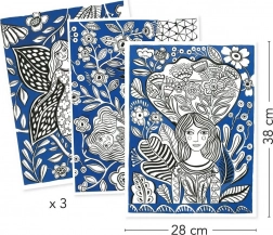 Setul conține 3 motive artistice de aproximativ 28 × 38 cm, pregătite să devină decorațiuni originale după colorare.