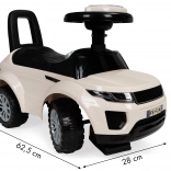 Practica cutie de depozitare sub scaun găzduiește jucării mici sau comori pentru drum. Picioarele speciale de protecție împotriva răsturnării pe axele față și spate previn bascularea la pornire și oprire. Mașinuța respectă standardele CE, EN71 și are capacitate de încărcare 27 kg, crescând odată cu copilul.