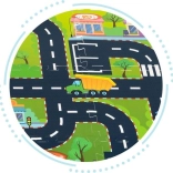 Imprimeul detaliat cu străzi, intersecții și clădiri stimulează imaginația și dezvoltă motricitatea și orientarea spațială a copiilor.