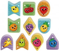 Elementul interactiv sub forma codiței aduce noi provocări și variații de joc. Introducerea și scoaterea pieselor dezvoltă motricitatea fină, coordonarea mână–ochi și raționamentul logic, în timp ce motivele cu fructe susțin îmbogățirea vocabularului și recunoașterea formelor.