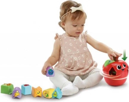 Mărul vesel, sortatorul de forme VTECH, transformă învățarea formelor și a fructelor într-un joc plin de bucurie. Datorită realizării sustenabile din 90% materiale reciclate, este nu doar sigur și durabil, ci și prietenos cu mediul. Copiii aleg decupajele potrivite și introduc 10 forme colorate în măr, exersându-și atenția și răbdarea.