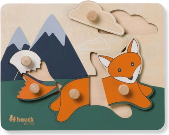 Puzzle-ul din lemn HAUCK Fox impresionează prin culorile armonioase și designul prietenos cu animăluțe, pe care copiii adoră să le potrivească iar și iar. Butonașele practice de pe piese facilitează prinderea cu mânuțele mici și încurajează jocul independent. Originea sustenabilă a lemnului, certificată FSC®, asigură o alegere sigură și responsabilă pentru casa ta.