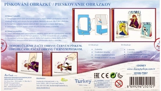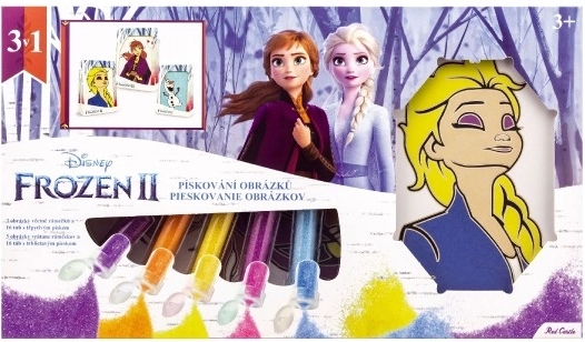 Setul creativ cu nisip pentru imagini cu motive din filmul Regatul de Gheață II este conceput pentru a oferi copiilor o activitate distractivă și creativă. Cu ajutorul celor trei șabloane pentru nisip și 16 tuburi cu nisip strălucitor colorat, copiii pot crea propriile imagini strălucitoare. După finalizarea nisipării, imaginea finalizată poate fi plasată în pachetul inclus și rama decorativă, ca o frumoasă decorație pentru camera copiilor.