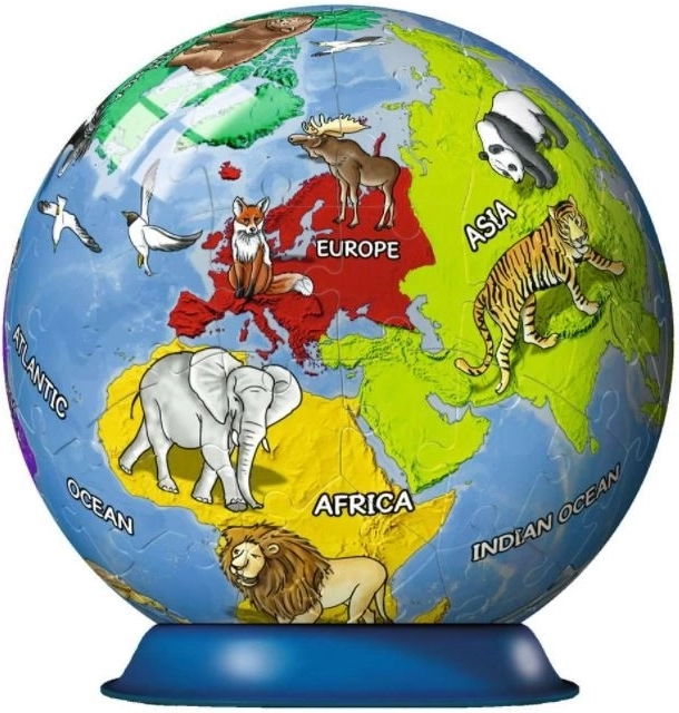 Descoperă lumea într-un mod jucăuș cu globul-puzzle 3D de la Ravensburger. Acest glob pentru copii din 72 de piese formează, după asamblare, o sferă cu diametrul de 12,9 cm și este ideal pentru copii de la 6 ani. Susține motricitatea fină, percepția spațială și interesul pentru geografie datorită culorilor vii și detaliilor atent lucrate.