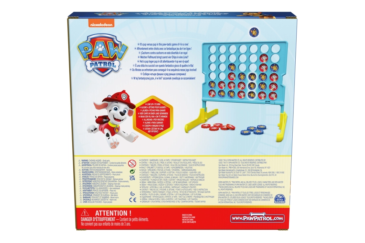 Un cadou perfect pentru micii fani ai Patrulei cățelușilor și ai jocurilor clasice de masă. Pregătiți-vă – cine aliniază primul patru la rând câștigă!