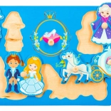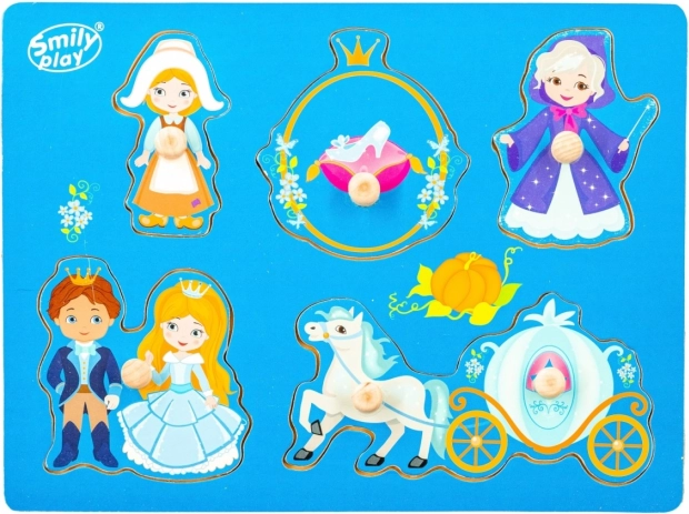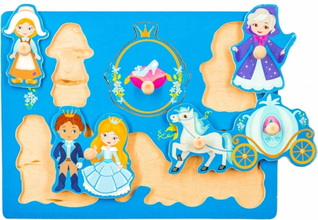 Acest puzzle din lemn cu tema basmului Cenușăreasa este o alegere excelentă pentru primul puzzle al copilului. Fiecare piesă are un mâner practic, datorită căruia se prinde ușor și se potrivește la locul ei. Placa colorată servește drept fundal clar, care îi indică micuțului amplasarea corectă a pieselor.