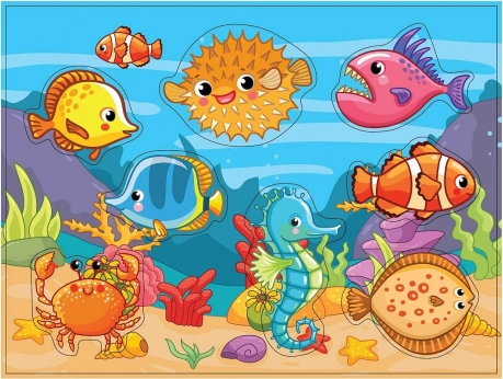 Fiecare formă de puzzle corespunde decupajului său. În timpul jocului, copiii își consolidează cunoștințele despre culori, forme și denumirile viețuitoarelor din lumea subacvatică.