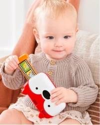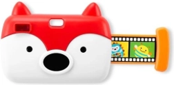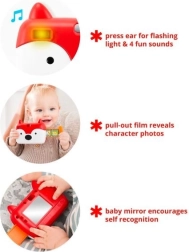 Aparatul foto pentru copii în formă de vulpe de la Skip Hop îi va încânta pe micii fotografi de la 6 luni. Oferă sunete realiste ale declanșatorului, „fulger” intermitent, oglindă pentru copii pentru autocunoaștere și o „bandă de film” extensibilă cu ilustrații drăguțe. Se ține ușor în mâinile mici și, printr-o singură apăsare pe urechea vulpii, pornește lumini și sunete.