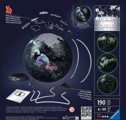 Descoperă magia universului oricând pe parcursul zilei cu puzzelul glob luminos al bolții stelare. După asamblarea din 180 de piese precise, în fața ta apar constelațiile și semnele zodiacului, care datorită materialului fosforescent strălucesc în întuneric. Datorită tehnologiei EasyClick, piesele se îmbină perfect și rezistă fără lipici. Globul servește totodată ca un element decorativ luminos delicat pentru camera copilului sau birou.