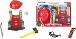 Deveniți eroul cu setul de pompieri pentru copii, care conține tot ceea ce este necesar pentru o joacă variată de-a pompierii: vestă, cască, toporaș, ochelari, extinctor, leviere și insignă.