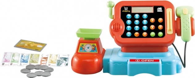 Casă de marcat cu cântar și scanner este o jucărie ideală pentru copiii de la 3 ani, care oferă un joc realist de comerț cu un scanner digital și cântar.