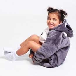Pătură cu hanorac pentru copii cu vârsta între 3 - 6 ani, cu un motiv drăgălaș de koala. Acest hanorac călduros și moale oferă confort maxim și căldură, fie că e vorba de uitatul la televizor sau de activități în aer liber.