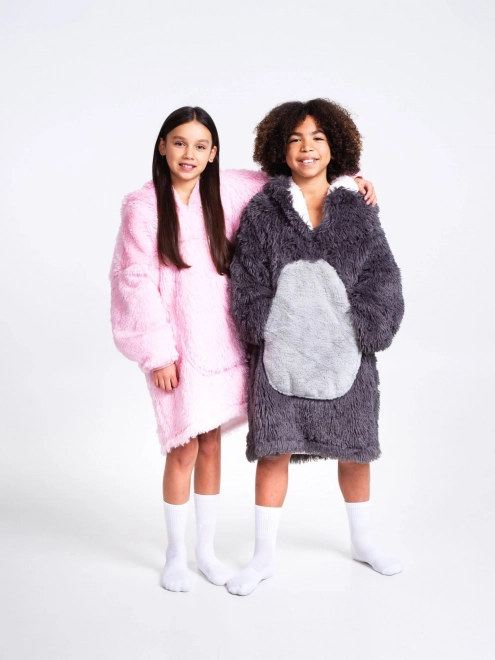 Această pătură-hanorac pentru copii cu glugă îmbină confortul maxim, căldura și libertatea de mișcare. Flanelul exterior este extrem de catifelat la atingere, în timp ce fleece-ul sherpa din interior încălzește de încredere în timpul vizionării TV, relaxării și jocului. Datorită croielii confortabile, de tip oversize, copiii se vor simți plăcut, fără nicio restricție.