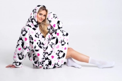 Acest hanorac și pătură într-unul este conceput pentru confortul zilnic. Croiala oversize nu restricționează mișcarea, iar materialele moi oferă o căldură plăcută. Motivul stilat cu panda adaugă un aspect jucăuș și transformă hanoracul într-un cadou grozav pentru femei și bărbați.