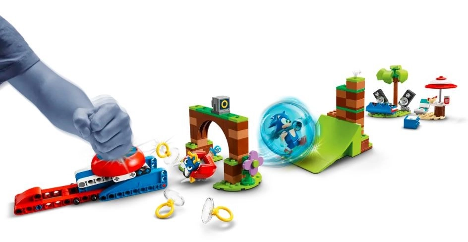 Construiește o pistă dinamică și lansează-l pe SONIC în bila albastră spre aventură. Datorită lansatorului, obstacolelor, inelelor și rampei, copiii se vor bucura de acțiune intensă și își vor antrena reflexele și coordonarea. Nu lipsește inamicul Motobug, pe care trebuie să-l învingi pentru ca Flicky să fie în siguranță.