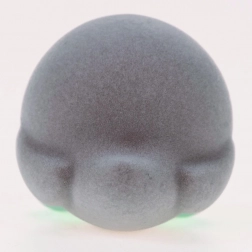 Această figurină de pluș are ochi mari negri și o textură moale, ideală pentru îmbrățișări și joacă.