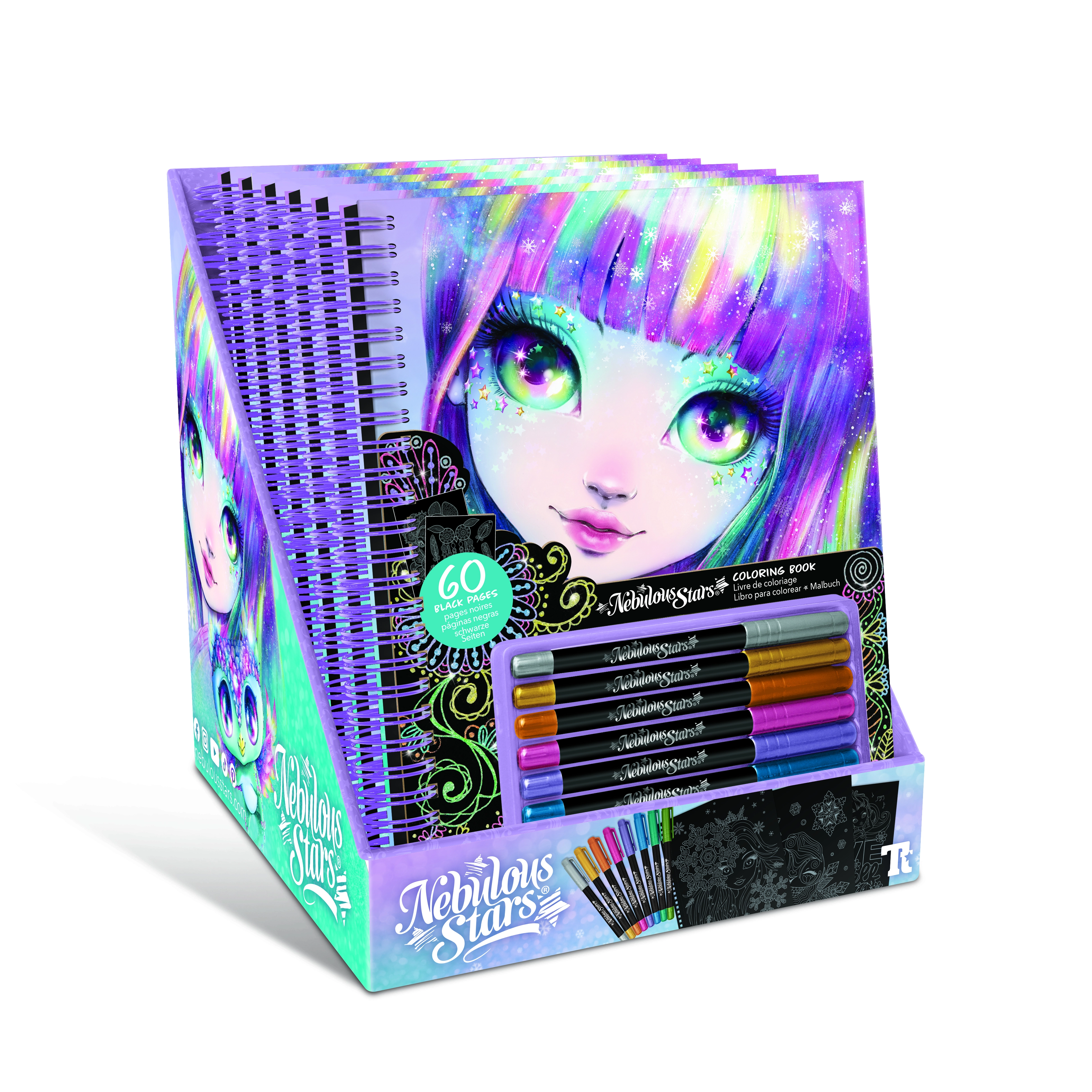Descoperă cărțile de colorat magice NEBULOUS STARS cu eroina Isadora: 60 de pagini negre cu motive predesenate și un set de 8 markere gel metalice pentru o colorare spectaculoasă. Datorită legăturii cu spirală rezistentă, blocul se deschide ușor și rămâne perfect plat. Te așteaptă creații metalice strălucitoare, colorare ușoară și povestea Isadorei pentru un plus de inspirație.