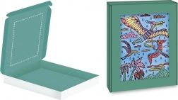 Acest set unic cu tematică dinosaurilor oferă o experiență creativă pentru micii artiști. Cu ajutorul unei pensule speciale, care are un rezervor cu apă, copiii pot picta treptat și pot observa cum culorile frumoase prind viață pe hârtie. Fiecare imagine este ilustrată detaliat și copiii învață cum să evite amestecarea culorilor. După finalizare, imaginile pot fi înrămate în cutia inclusă, conferind creațiilor copiilor un aer de originalitate.