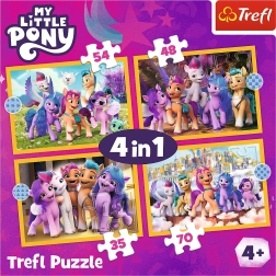 Set colorat de 4 în 1 puzzle cu motive MY LITTLE PONY care îi va încânta pe micii iubitori de puzzle-uri. Patru imagini separate cu dimensiunea de 285 × 205 mm și număr diferit de piese (35, 48, 54, 70) aduc distracție și o provocare progresivă. Fabricat în Polonia din materiale ecologice, potrivit pentru copii de la 4 ani.