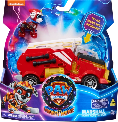Alăturați-vă lui Marshall și trăiți misiuni de salvare palpitante în autospeciala lui din filmul Patrula Cățelușilor: Marele film! Acest model de mașină din Patrula Cățelușilor măsoară 18 centimetri în lungime și peste 7,5 centimetri în înălțime, are un design super elegant, o scară rabatabilă și efecte sonore captivante cu lumini intermitente sincronizate, fiind o completare fantastică la colecția tuturor fanilor Patrulei Cățelușilor (bateriile sunt incluse)! Marshall poartă uniforma sa roșie din filmul Patrula Cățelușilor: Marele film, cu părți translucide și o cască splendidă. Așezați-l pe Marshall pe scaunul autospecialei lui de pompieri pentru a activa iluminarea în diferite zone ale vehiculului și urmăriți cum i se aprind lăbuțele, făcând misiunea de salvare și mai antrenantă și distractivă, în timp ce conduceți vehiculul lui de la o misiune la alta! Cu jucăriile din universul Patrulei Cățelușilor, copiii își pot dezvolta imaginația și abilitățile motorii în timp ce retrăiesc scenele preferate din film. Pentru misiuni inspirate din serialul Patrula Cățelușilor, și mai distractive și pline de adrenalină, colecționați toate jucăriile din filmele Patrulei Cățelușilor, cum ar fi nava aeriană comandă, și toate jucăriile din ediția specială a Patrulei Cățelușilor pentru fete și băieți, precum figurinele și seturile de joacă Mighty Pups, Aqua Pups și Big Truck Pups (fiecare se vinde separat), și bucurați-vă de aventuri nesfârșite alături de eroul vostru canin preferat și autospeciala de salvare a lui Marshall din filmul Patrula Cățelușilor: Marele film!