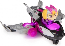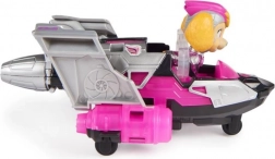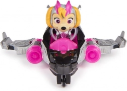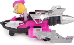 Skye poartă uniforma roz din film, cu detalii translucide și o cască stilată. Joaca cu acest set susține motricitatea fină, role-play și imaginația. Pentru și mai multă distracție, combinați cu alte vehicule, figurine și seturi Paw Patrol (se vând separat).