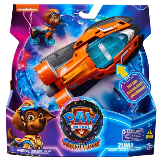 Alăturați-vă lui Zuma și trăiți aventuri palpitante de salvare cu aeroglisorul său din filmul Patrula Cățelușilor: Marele Film! Acest model de aeroglisor al Patrulei Cățelușilor are 18 centimetri lungime și aproape 10 centimetri înălțime, se remarcă printr-un design super elegant și efecte sonore incitante cu lumini intermitente sincronizate, fiind o completare fantastică la colecția tuturor fanilor Patrulei Cățelușilor (bateriile sunt incluse)! Zuma poartă uniforma sa portocalie din filmul Patrula Cățelușilor: Marele Film, cu părți translucide și o cască grozavă. Așezați-l pe Zuma pe scaunul bărcii sale pentru a activa iluminarea în diverse zone ale ambarcațiunii și priviți cum i se aprind lăbuțele, făcând misiunile de salvare și mai captivante și distractive, în timp ce treceți cu barca sa de salvare de la o misiune la alta! Cu jucăriile din universul Patrulei Cățelușilor, copilul își poate dezvolta imaginația și abilitățile motorii în timp ce retrăiește scenele preferate din film. Pentru misiuni inspirate din serialul Patrula Cățelușilor, și mai amuzante și pline de suspans, colecționați toate jucăriile din filmele Patrulei Cățelușilor, cum ar fi uimitorul portavion de comandă, și toate jucăriile din edițiile speciale pentru fete și băieți, precum figurinele și seturile de joacă Mighty Pups, Aqua Pups și Big Truck Pups (fiecare se vinde separat), și bucurați-vă de aventuri nesfârșite alături de cățelul vostru erou preferat și de aeroglisorul de salvare al lui Zuma din filmul Patrula Cățelușilor: Marele Film!