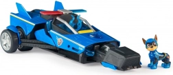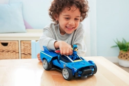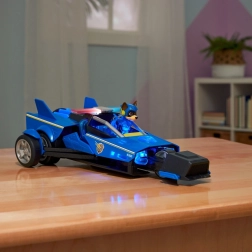 Vehiculul polițienesc ultramodern al lui Chase aduce copiilor aventuri pline de acțiune ca pe marele ecran. Când așezi figurina în cockpit, se activează luminile albastre intermitente atât pe mașină, cât și pe lăbuțele eroului. Printr-o singură apăsare, pornești transformarea în modul de salvare – vehiculul se prelungește la peste 38 cm și se lărgește până la 20 cm pentru o cursă și mai dinamică.