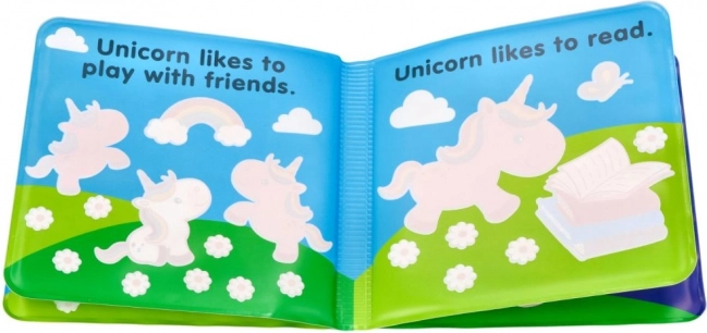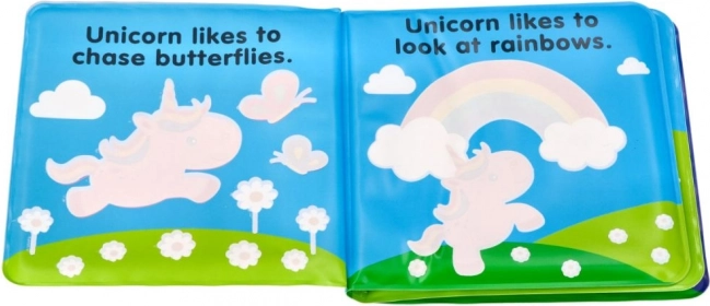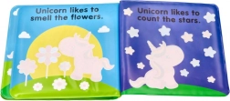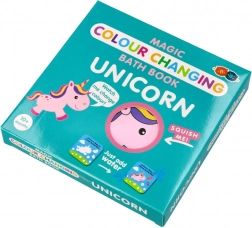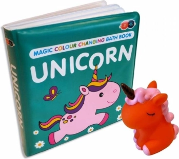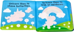 Leporelo-ul impermeabil cu motiv UNICORN îi încântă pe cei mici cu transformarea coloristică la contactul cu apa. O modalitate distractivă de a-i motiva la baie și explorare.