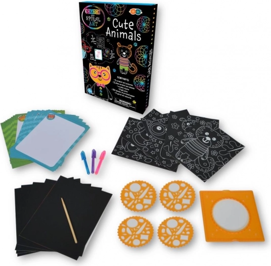 Set creativ pentru micii artiști de la 3 ani, care aduce distracție și dezvoltă motricitatea fină. Copiii își creează propriile imagini cu animăluțe vesele folosind o răzuitoare și tehnici spiralate. Setul stimulează creativitatea, răbdarea și imaginația și oferă o activitate ușoară și curată.