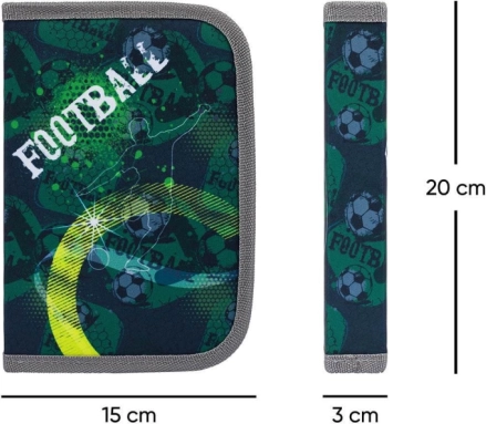 Penarul școlar cu un singur etaj, cu motiv de fotbal, oferă spațiu suficient pentru toate rechizitele tale școlare, pe care le poți depozita în siguranță datorită fermoarului de calitate. Designul elegant, cu siluete de fotbaliști și mingi, face din acest penar accesoriul perfect pentru iubitorii de sport.