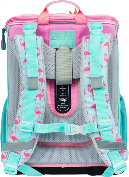 Intrați în lumea fermecătoare a flamingoului cu acest ghiozdan școlar. Ghiozdanul este conceput pentru copii de la clasa I și oferă confort maxim datorită spatelui modelat ergonomic și bretelelor de umăr complet reglabile. Sistemul special pentru spate ERGO ADJUSTABLE SYSTEM permite reglarea ușoară a înălțimii bretelelor, astfel încât ghiozdanul să se potrivească perfect de fiecare dată.