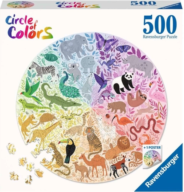 RAVENSBURGER Puzzle rotunde Cercul culorilor: Animale 500 piese