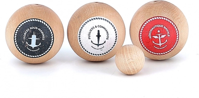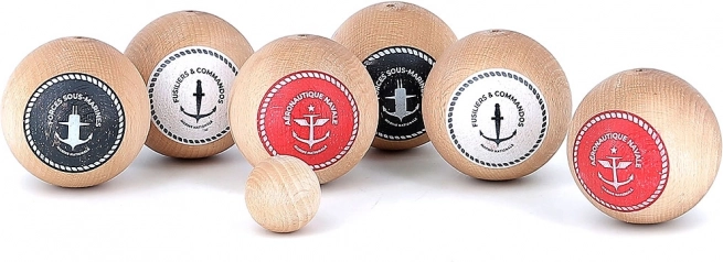 Set stilat pentru jocul tradițional de pétanque, cu design inspirat de marina franceză. Conține 6 bile de joc, o bilă-țintă și un săculeț textil practic. Fabricat din lemn masiv lăcuit, ecologic și prietenos cu mediul. Ideal pentru 2–6 jucători, potrivit de la 5 ani, fabricat în Franța.