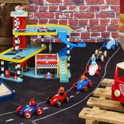 Mașinuța de curse câinele Lucien, în iconica combinație albastru-roșu, este fabricată din lemn de calitate și lăcuită printr-o tehnologie unică de scufundare, care asigură o suprafață netedă, culori vii și o durată de viață îndelungată. Copiii vor iubi rostogolirea ușoară, formele plăcute și expresia prietenoasă a șoferului.