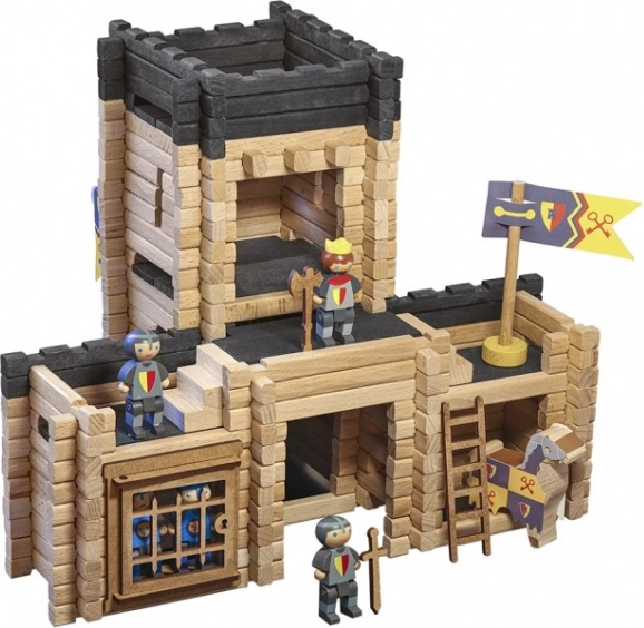 Acest set de construcție din lemn JEUJURA de înaltă calitate dezvoltă motricitatea fină, creativitatea și gândirea logică. Piesele din lemn masiv de fag și pin se îmbină ușor, astfel încât copiii pot construi fără efort o fortăreață cu detalii precum pod mobil, închisoare și pasarele de strajă. Jocul este completat de figurine de cavaleri, cai și o catapultă pentru povești pline de acțiune.