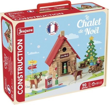 Descoperă magia Crăciunului cu setul de construcție din lemn JEUJURA – Căsuță de Crăciun cu 90 de piese. Construiește-ți propria scenă de iarnă cu căsuța lui Moș Crăciun, spiriduși, săniuță cu reni și brad de Crăciun. Setul este fabricat în Franța din lemn masiv de înaltă calitate și ambalat într-o valiză practică. 90 de piese din lemn masiv, tematică de Crăciun cu Moș Crăciun, vopsele ecologice pe bază de apă, ambalaj practic cu instrucțiuni.